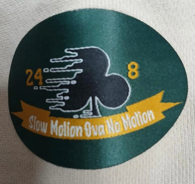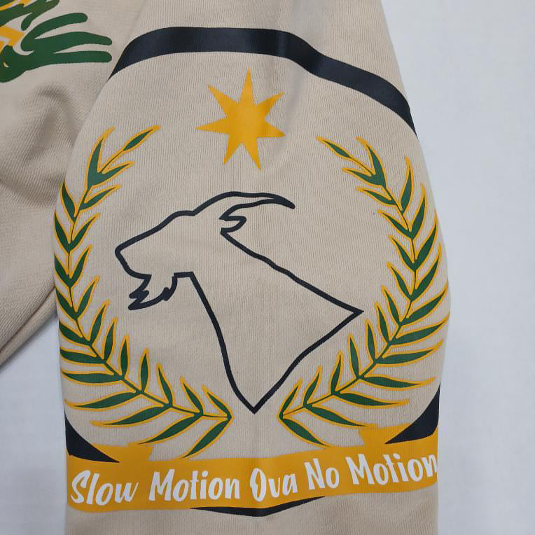 - Embroidered Left Sleeve Patch: Featuring Motion Club's signature logo paired with the empowering slogan, “Slow Motion Ova No Motion.”