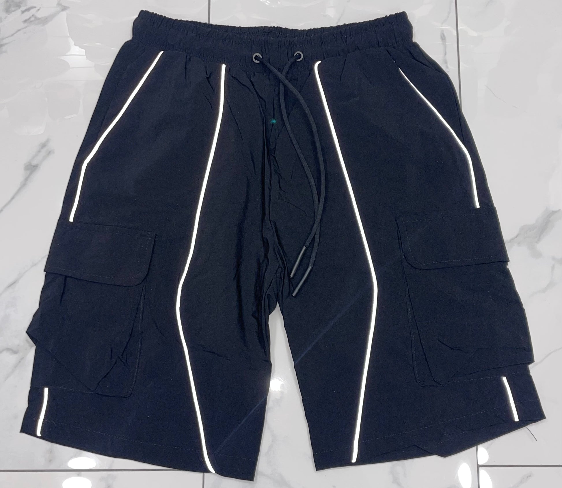 American Stitch Windbreaker Nylon 6 Inch Reflecting Piping Shorts (Black) U